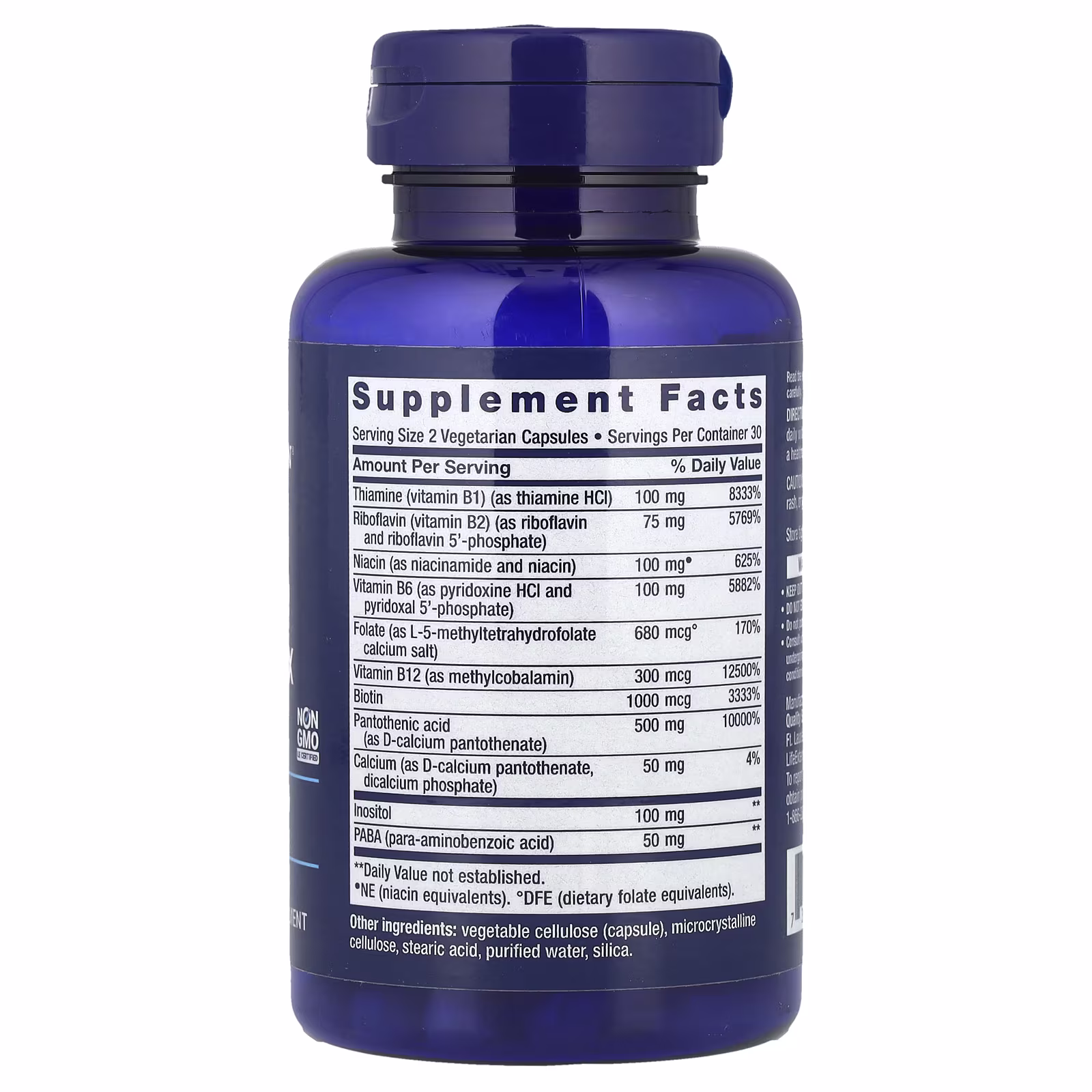 Life Extension® BioActive Complete B-Complex propose un complexe complet de vitamines B à haute activité, formulé exclusivement avec des formes bioactives pour une assimilation optimale. Chaque portion de deux gélules apporte 100 mg de vitamine B1, 75 mg de B2, 100 mg de B3, 100 mg de B6, 1 000 µg de biotine, 680 µg de folate sous forme de méthylfolate et 300 µg de vitamine B12, complétés par 100 mg d’inositol et 50 mg de PABA. Ces gélules végétariennes, garanties sans OGM et sans gluten, sont spécialement conçues pour favoriser le métabolisme énergétique ainsi que le bon fonctionnement cognitif et cardiovasculaire