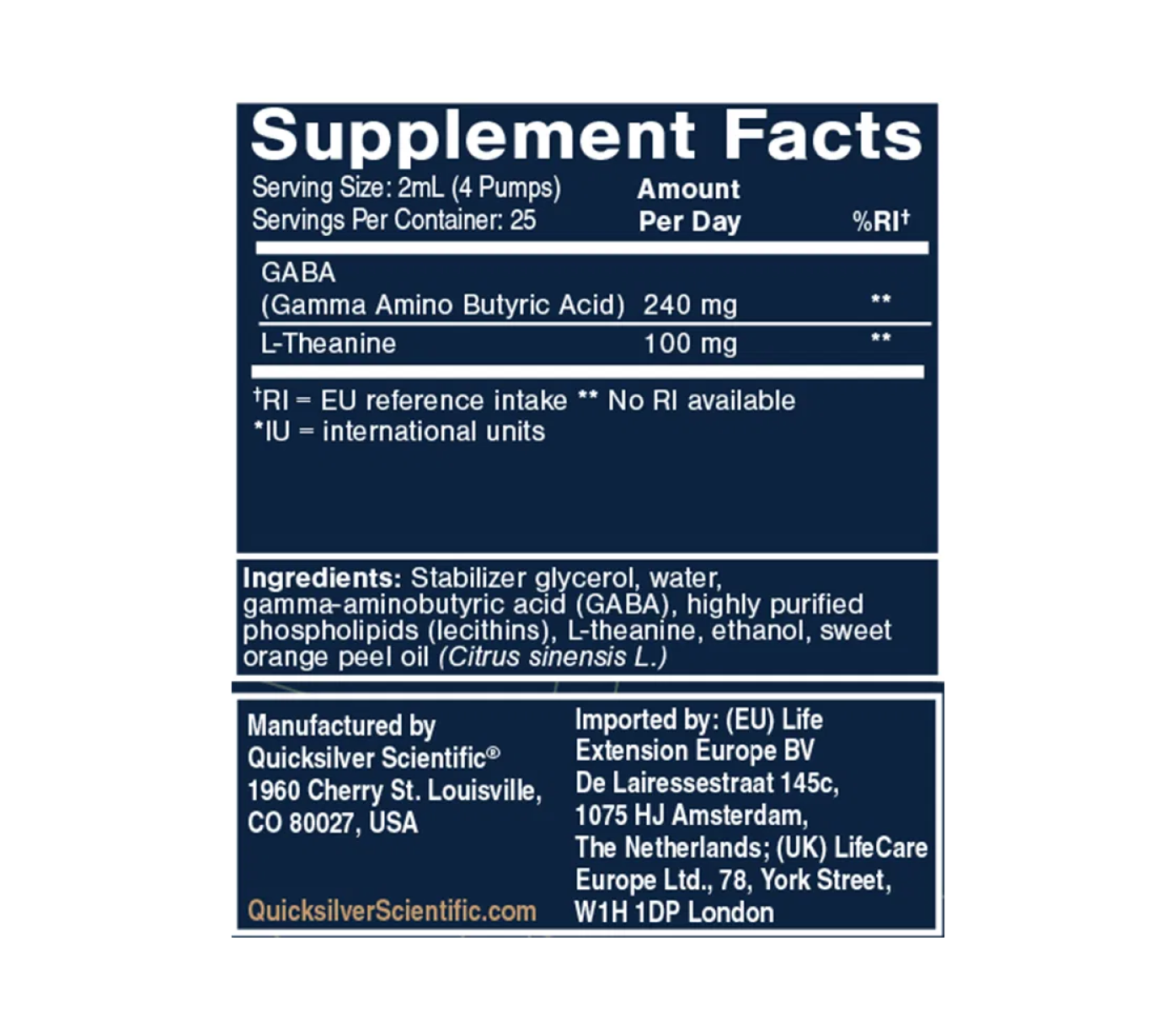 Life Extension®, Liposomal GABA with L-Theanine, 50ml· Qualité pharmaceutique et usage maîtrisé